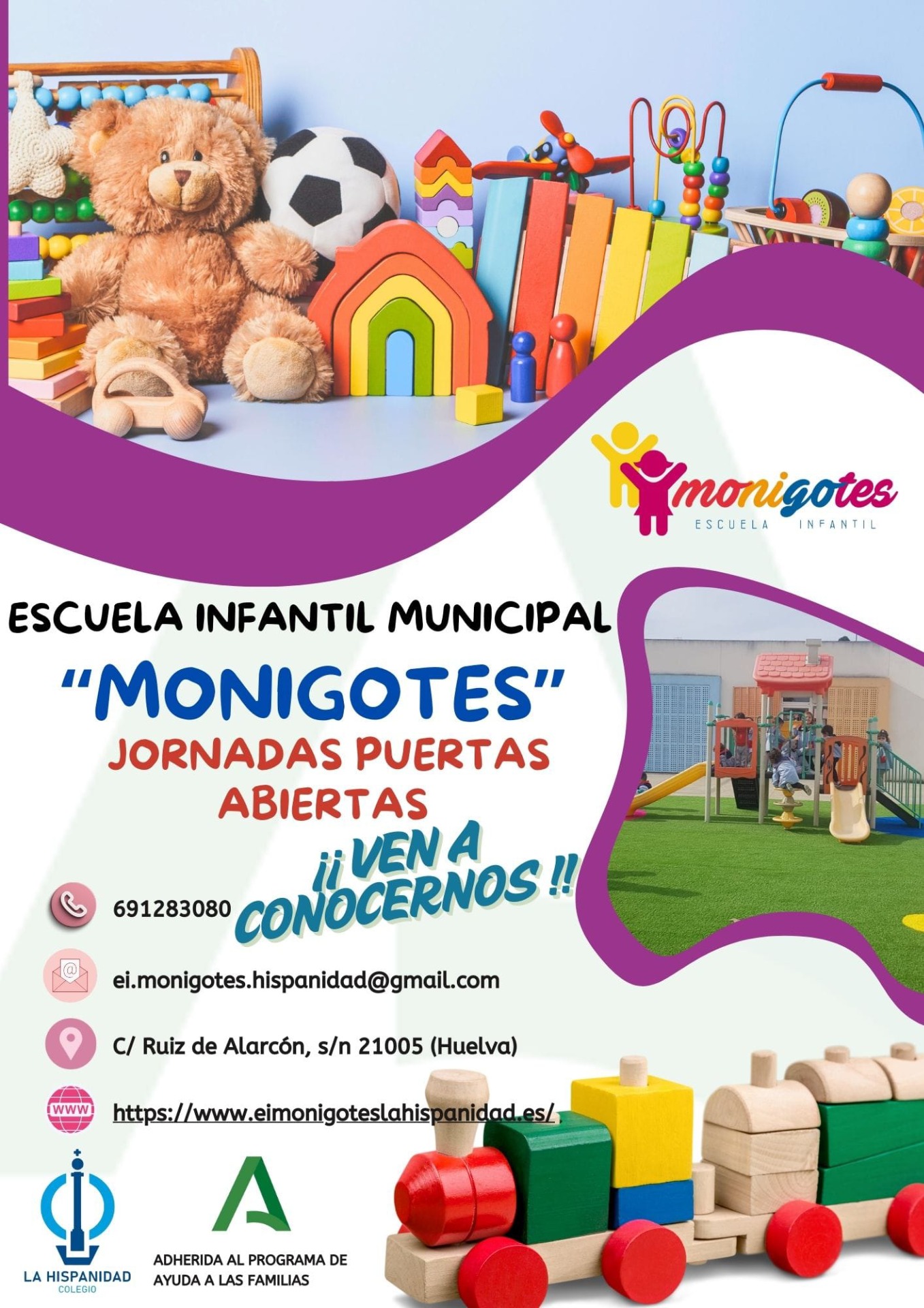 ¡Abril ha llegado y con él la oportunidad de formar parte de nuestra gran familia! ¡Abrimos el plazo de inscripción en la Escuela Infantil "Monigotes"! Si buscas un lugar donde tu peque crezca, aprenda y disfrute en un ambiente cálido y estimulante, ¡esta es tu oportunidad! Ven a visitarnos, conoce nuestras instalaciones y metodología. Infórmate y realiza tu inscripción. ¡No dejes pasar el mes de abril para asegurar tu plaza! Contáctanos para más información. ¡Te esperamos con los brazos abiertos!